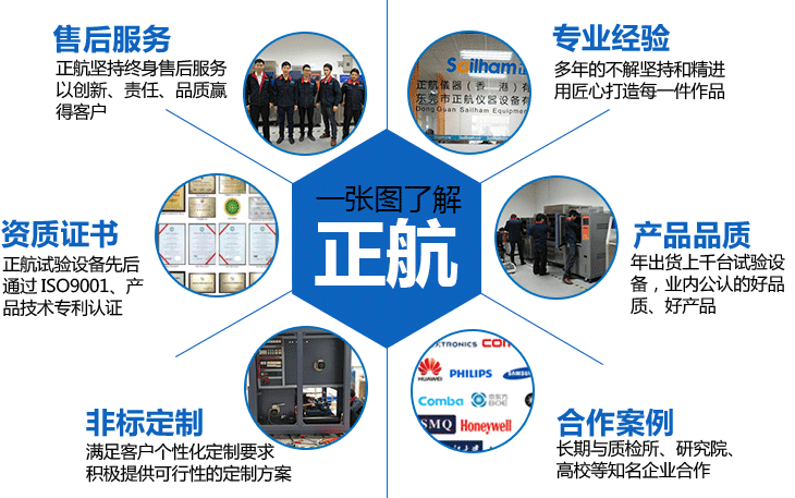 正航儀器設(shè)備有限公司是一家致力于各種環(huán)境檢測(cè)試驗(yàn)設(shè)備研發(fā)、設(shè)計(jì)、制造、銷售服務(wù)為一體的專業(yè)性企業(yè)。并陸續(xù)在全國(guó)各大城市建立營(yíng)銷及售后服務(wù)網(wǎng)絡(luò)。我們合作客戶有質(zhì)檢所、科研單位、大學(xué)、國(guó)企、大型企業(yè)。設(shè)備的精密情、穩(wěn)定性、售后服務(wù)等都有保障。公司不斷精益求精,創(chuàng)造符合多行業(yè)可靠性試驗(yàn)標(biāo)準(zhǔn)要求的優(yōu)質(zhì)產(chǎn)品,客戶遍及于電子、電池、TP、半導(dǎo)體、LED光電、塑膠塑料、汽車、軍工、大專院校、航天、科研、計(jì)量、質(zhì)檢、太陽(yáng)能光伏...等科技產(chǎn)業(yè),從產(chǎn)品研發(fā)到售后服務(wù),每一個(gè)環(huán)節(jié)之間都以客戶的觀點(diǎn)與需求作為思考的出發(fā)點(diǎn),專注非標(biāo)定制。